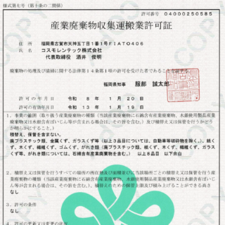 | 2026年1月 | 産業廃棄物収集運搬業許可 |